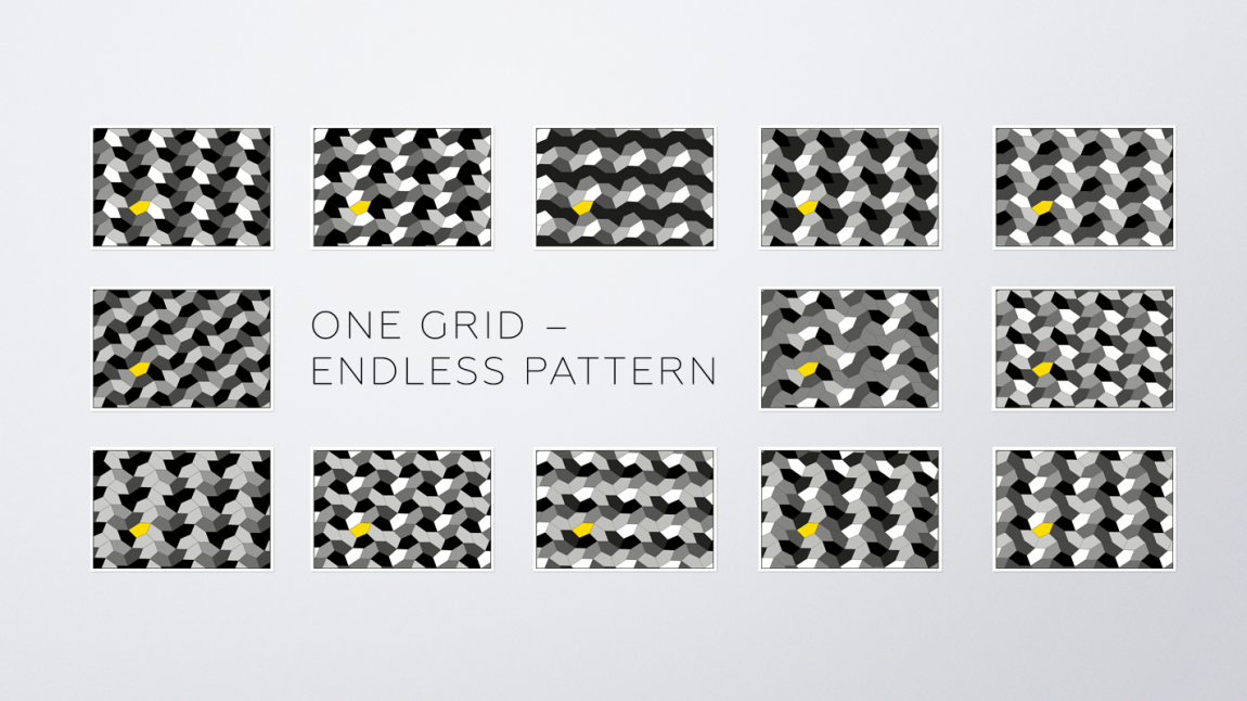 В основі айдентики – 15 різних паттернів, кожен з яких створений з мозаїки відповідного п’ятикутника. Зроблено це згідно з усіма математичними правилами, оскільки точність у математичних колах – невід’ємний чинник.